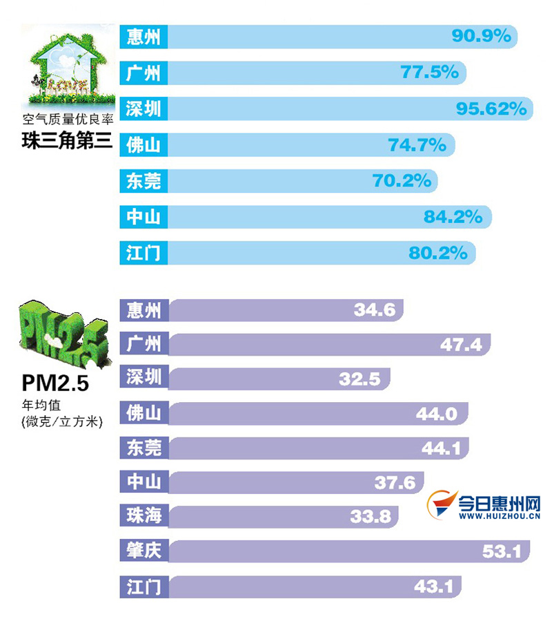 惠州的好空气是怎样“炼成”的?惠州的“家长”制定了一套严格的审核制度,就算效益再好,再能提高惠州GDP,只要是不符合产业政策要求的项目,不批!不符合相关规范和功能区划要求的项目,不批!不符合节能减排的环保标准和总量要求的项目,还是不批!“十二五”以来的4年时间,我市否决的项目超过800个,对要进入惠州的新项目设置了环保高门槛,对已经进驻惠州的老项目也一视同仁,排放标准不合格就赶紧转型升级去!