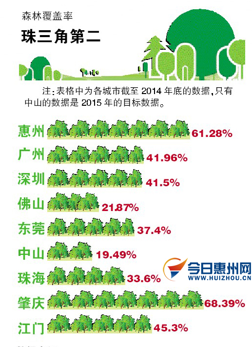 按照国际标准,森林覆盖率在40%以上才算适合,惠州的森林覆盖率超过了60%,在珠三角中仅次于肇庆,比珠三角平均水平高出20个百分点。与此同时,惠州于去年荣膺“国家森林城市”称号,成为广东省首个获此殊荣的地级市。