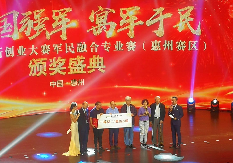 2018中国创新创业大赛军民融合专业赛颁奖典礼于10月16日下午于仲恺高新区星恺大剧院举行,中国科学院院士孙家栋、中国工程院院士戚发轫与中国人民解放军海军原副司令赵兴发来到现场为获奖团队颁奖。仲恺高新区军民融合产业园项目签约仪式也在颁奖典礼上进行。