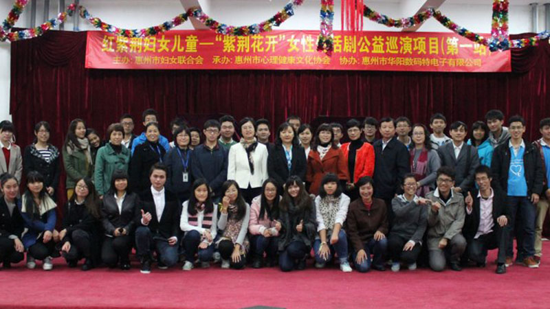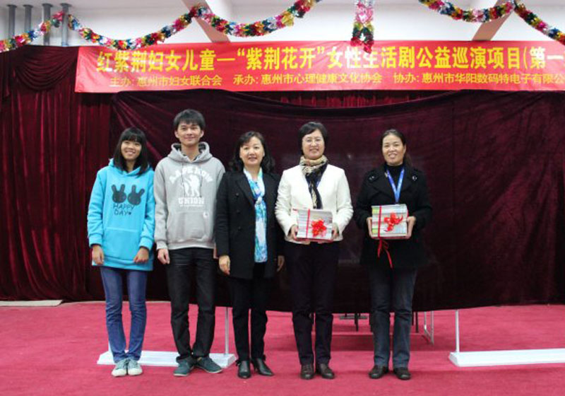 12月14日晚8时许,由惠州市妇联资助、惠州市健康文化协会承接的红紫荆妇女儿童服务——“紫荆花开”女性生活剧公益巡演项目首站演出在华阳工业园惠州市华阳数码特电子有限公司举行。演出由11月份组建的红紫荆公益剧团承办。该剧团成员主要是由惠州学院热心公益、热爱表演的大学生组成。惠州市妇联陶文青副主席、权益部黎雪环部长;华阳集团总裁助理温惠群、经理陈雪英;惠州市心理健康文化协会郑荃耀副会长、创成集团人力资源经理梁洁女士等嘉宾出席了活动,200多位华阳员工观看了演出。