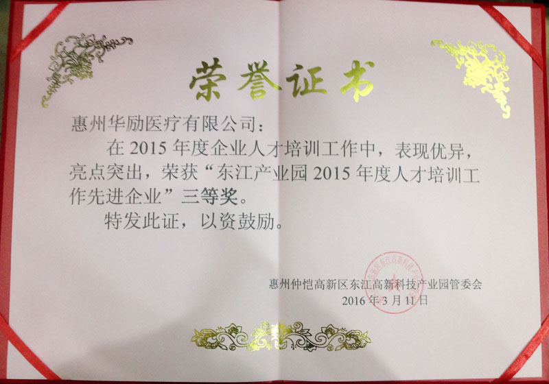 为鼓励、引导园区企业发挥主体作用、加强人才培训工作,3月11日惠州市东江产业园召开企业人才工作会议,对2015年度人才培养工作成绩突出的15家企业进行表彰奖励。惠州市华阳集团股份有限公司、惠州华励医疗有限公司双双获奖。