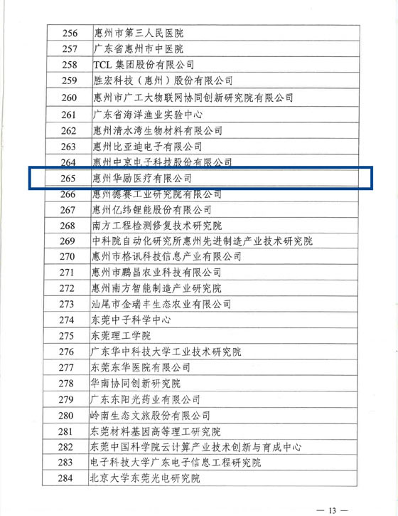 惠州市仲恺高新区共9家单位首批申报获得批准。除惠州华励医疗有限公司以及中科院自动化所惠州先进制造研究院、广东工业大学创新研究院两家研究机构外,其他6家均为深交所A股上市公司。这是社会各界对华励医疗这家初创企业创新发展的鼓励与肯定,也是华励医疗综合实力逐步提升的证明。