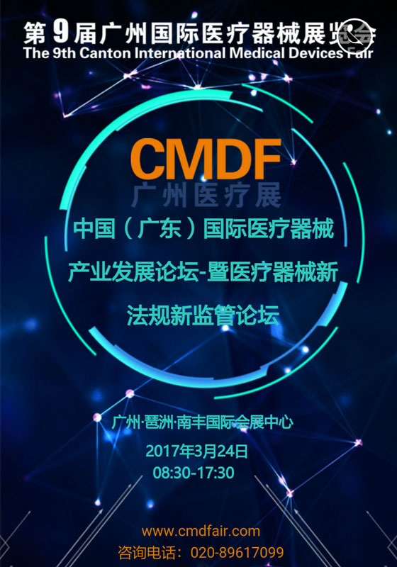 2017 China (Guangdong) Medical Device Development Forum was initiated by Guangdong Medical Device Management Academy, and it was held at Canton International Exhibition Center, as a session of 2017 CMDF, the China Canton International Medical Devices Fair, one of the most famous medical device exhibition fair in South China. With over 300 exhibitors from 21 countries and regions, 2017 CMDF attracted over 15000 professional buyers from 18 counties.